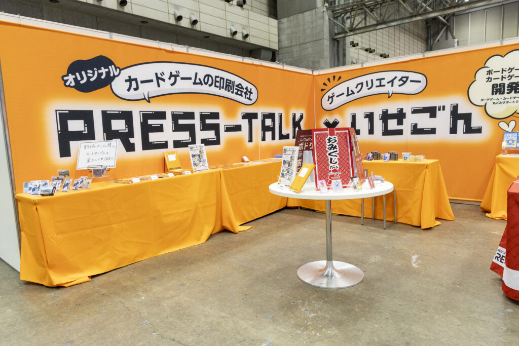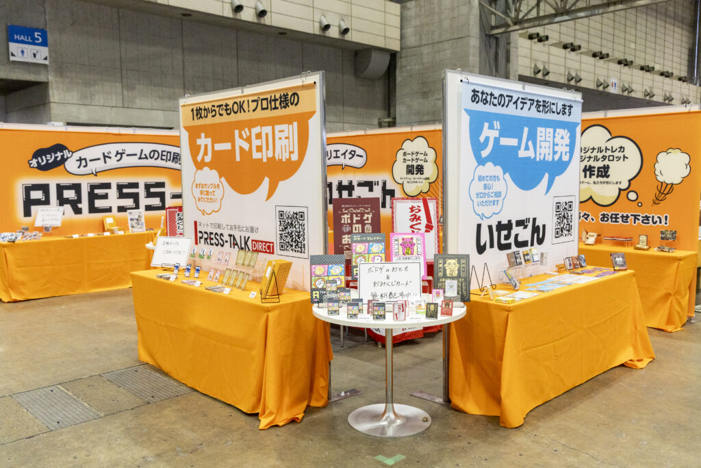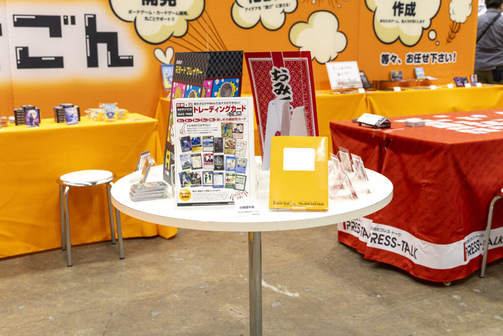 名古屋でトレカなどを印刷している会社プレス・トークとボードゲームクリエイターいせごんのコラボ出展。