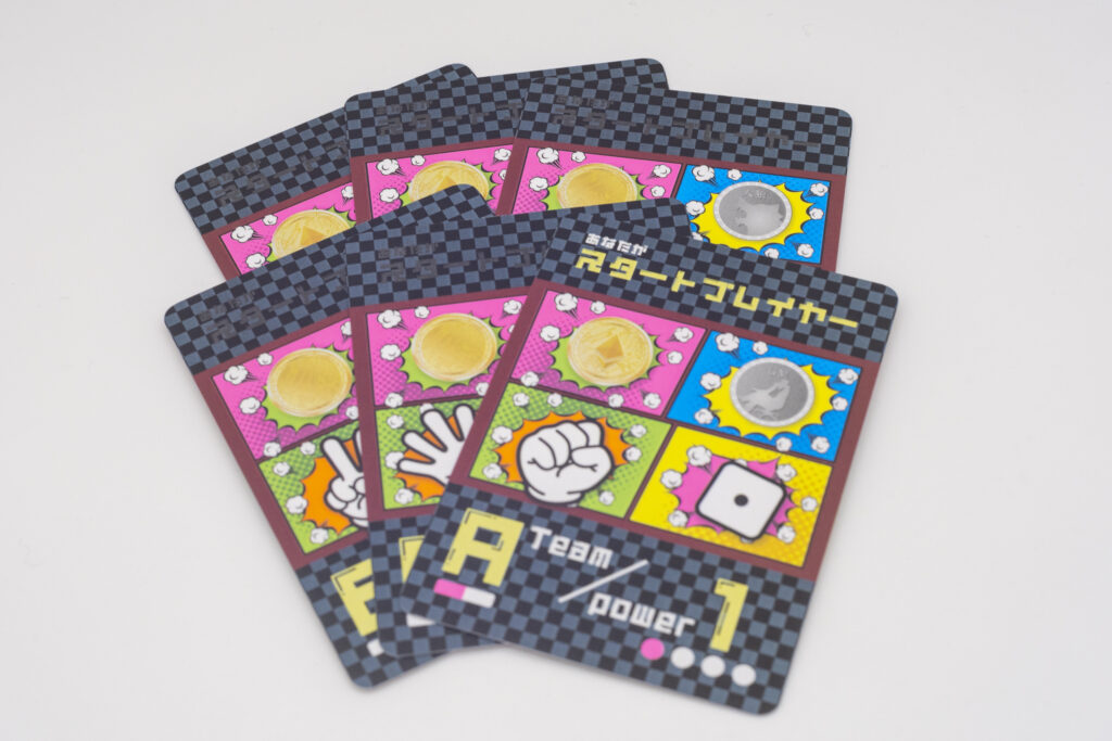 1. 人数分のカードを使います。うち、1枚だけ「あなたがスタートプレイヤー」と色付きのものを入れます。