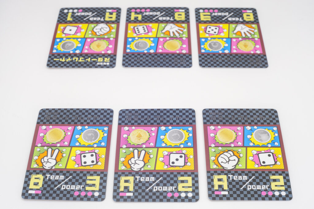 3. 1枚ずつ表にしていき、合計点が大きいプレイヤーの勝利です。